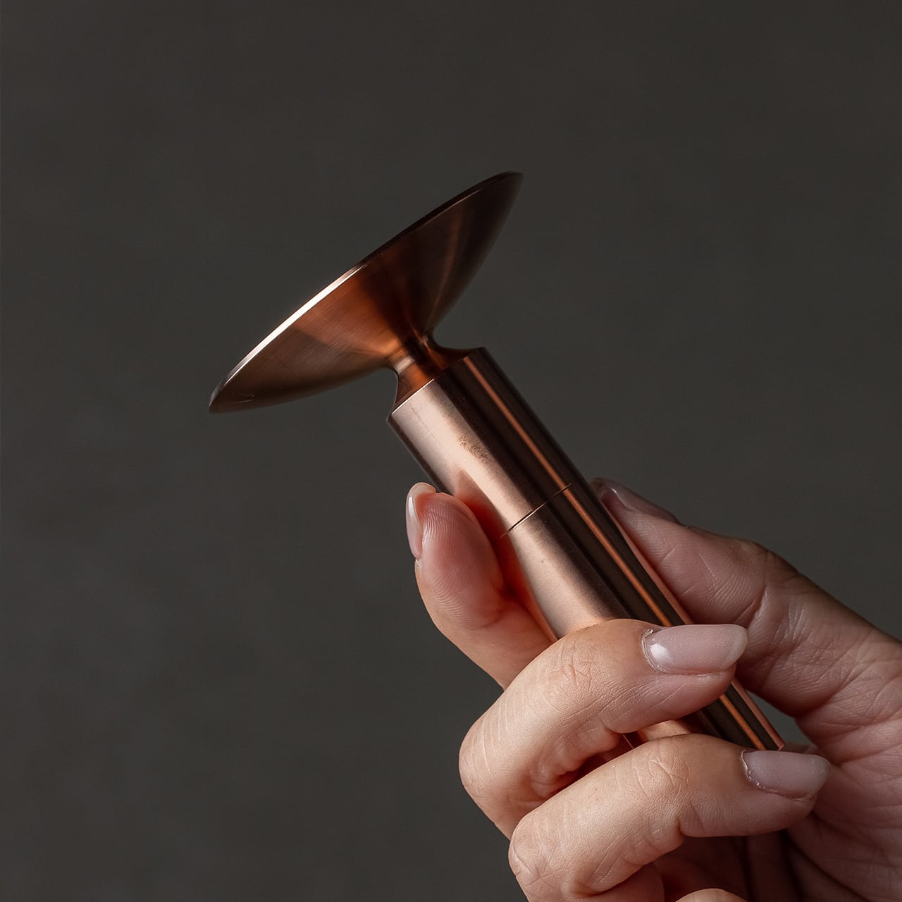 精密に削り出した堅牢な無垢の銅は、使うほどに深みを帯びてゆく。